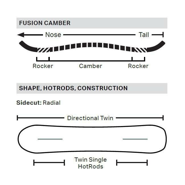 Ståle によってデザインされたStale Crewzer は、ミディアム・フレックスであらゆるコンディションに対応する万能ボード。パークを攻め、サイドヒットを当て込み、サイドカントリーを楽しむために必要なレスポンスとプレス性能を求めるライダーにとって最適。